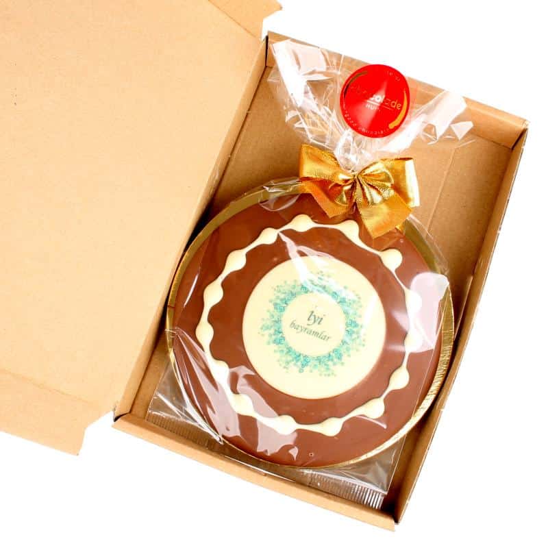 Een chocolade geschenk gemaakt van heerlijke chocolade met Eid Mubarak. Deze ronde plak chocolade weegt circa 200 gram en wordt met sterretjes gedecoreerd. Dit geschenk is zeer geschikt voor brievenbuspost. Deze ronde plak wordt verpakt in een transparant zakje (eventueel met een kaart in een verzenddoosje). Deze op maat gemaakte attentie is een lekker geschenk voor een kleiner budget. Het is tevens mogelijk om een eigen afbeelding aan te leveren die wij verwerken in de chocolade. Voor dit product dient u de afbeelding in een jpg-bestand aan te leveren.