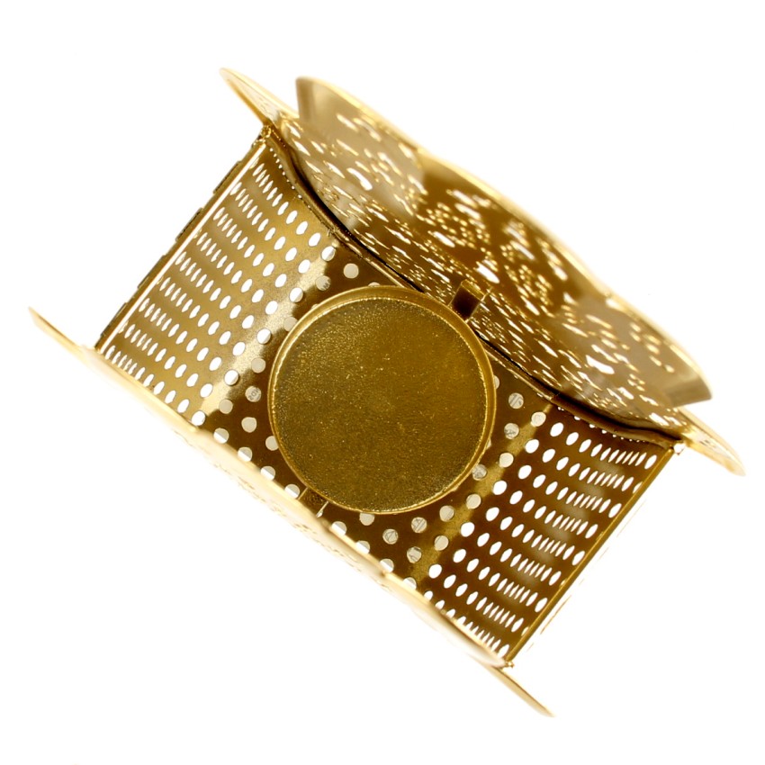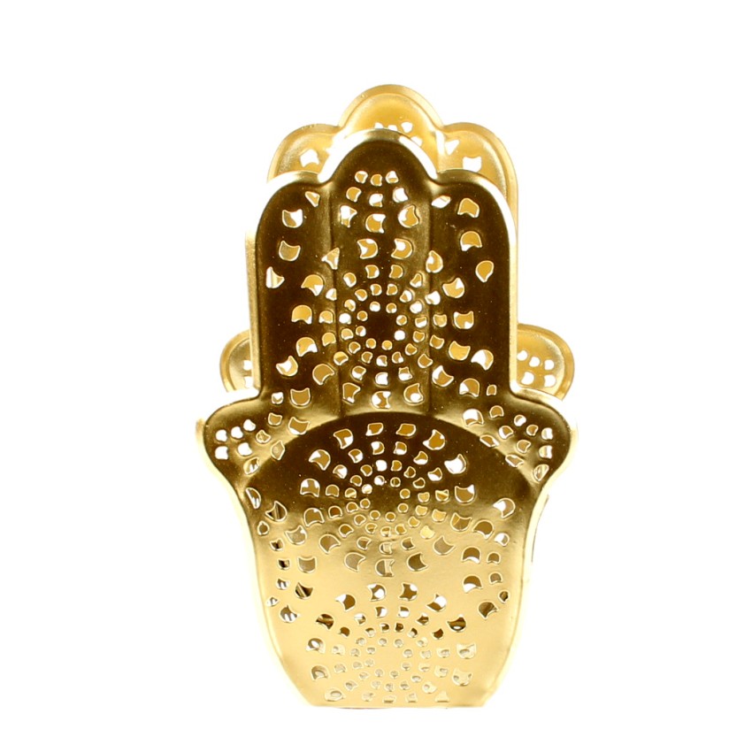 Dit theelicht voor een klein kaarsje is gevuld met een zakje chocolade bloemen en een ronde plak chocolade met “Eid Mubarak”.