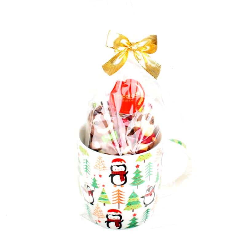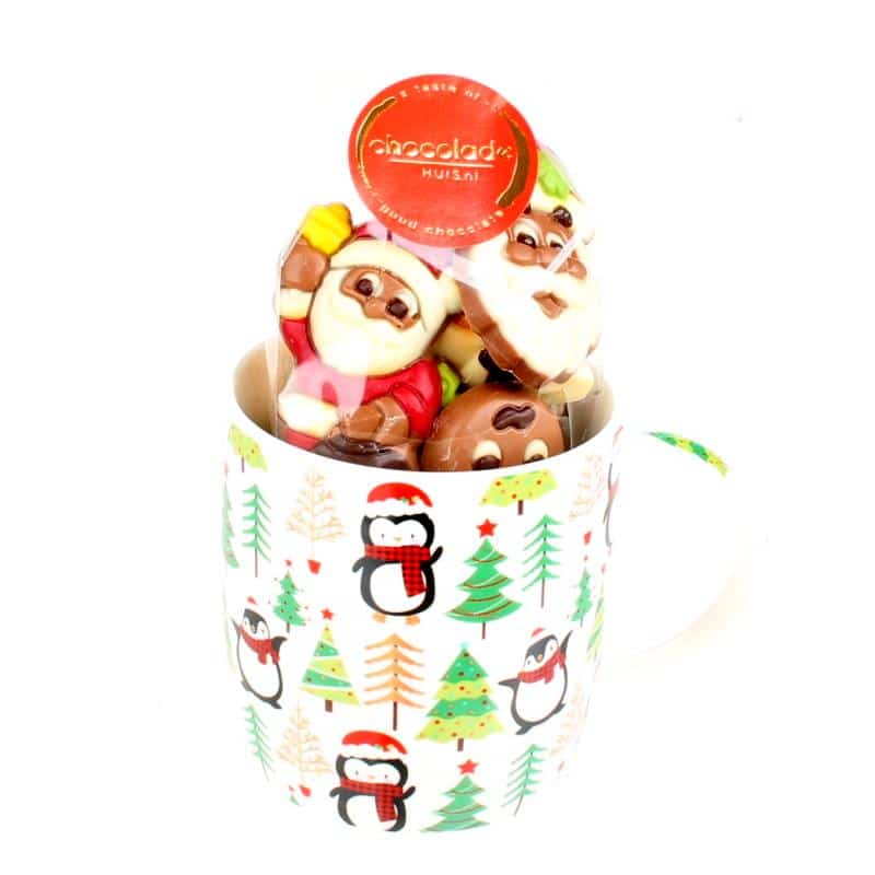 Deze kerstbeker met kerstchocolade is gevuld met vrolijke chocolade kerstfiguurtjes (125 gram) en is een leuk cadeau om weg te geven. Een mooie porseleinen mok met kerstdecor is een blijvend cadeautje voor de volgende kerst.