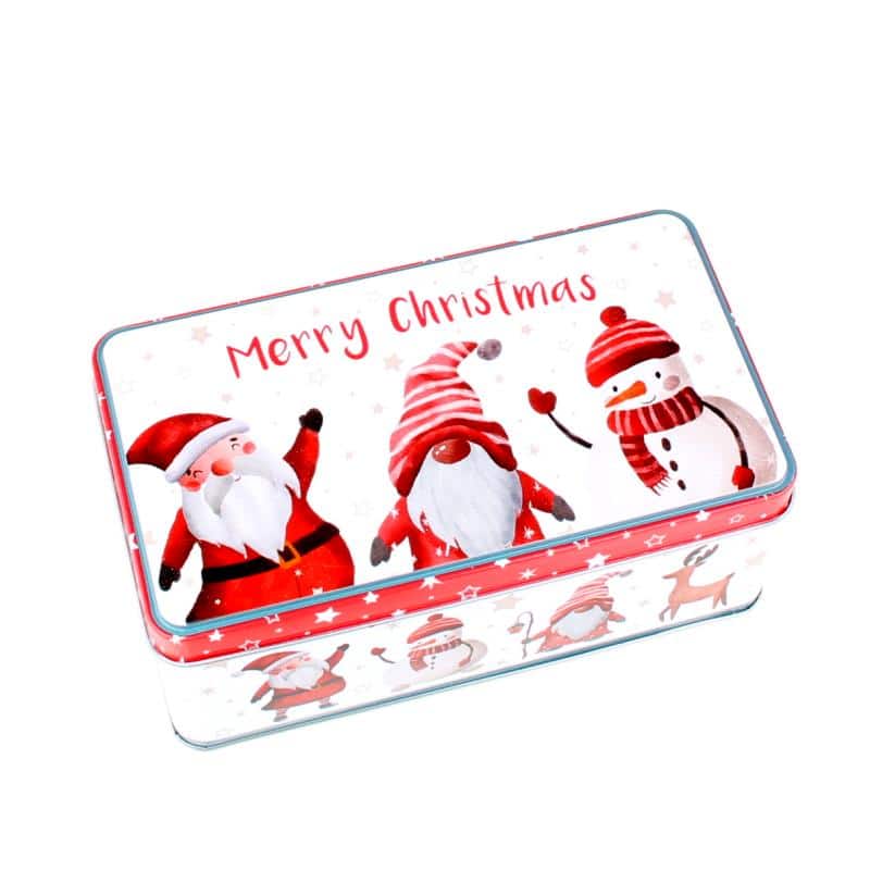 Dit vrolijke kerstblik vol met chocolade is gevuld met 3 verschillende zakjes: 125 gram chocolade kerstfiguurtjes, chocolade kerstboom en 2 chocolademelksticks. Een chocoladegeschenk met een echte kerst-uitstraling. Daarnaast is het kerstblik een leuk blijvend cadeautje. De afmetingen van het blik zijn 18x10x7 cm.