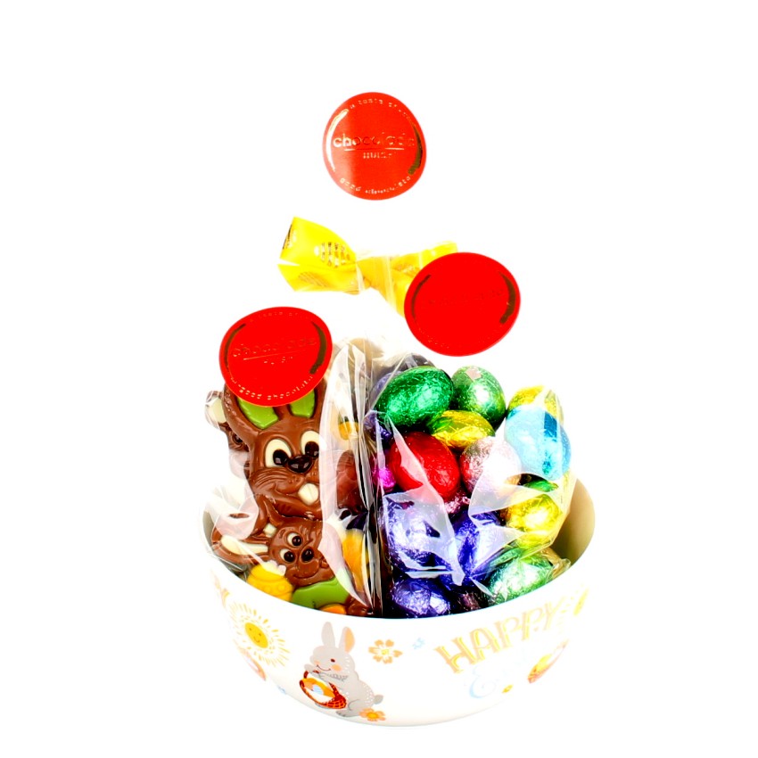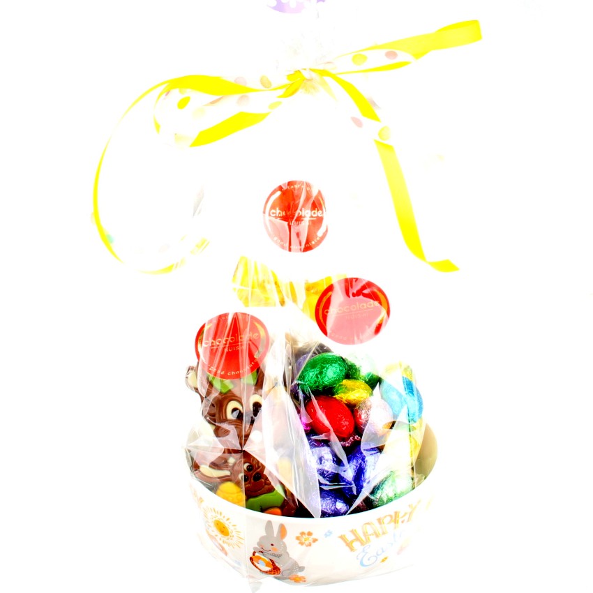 Deze pakket met veel luxe paaschocolade is een leuk aardewerk paasbakje met veel heerlijke chocolade. Dit paaspakket met veel chocolade is perfect voor iedereen die van lekker snoepen houdt. Geniet van 140 gram gemengde paaseitjes, 125 gram luxe bonboneitjes en 125 gram paasfiguurtjes. Een geschenk dat bestaat uit veel chocolade en mooi verpakt voor fijne paasdagen.