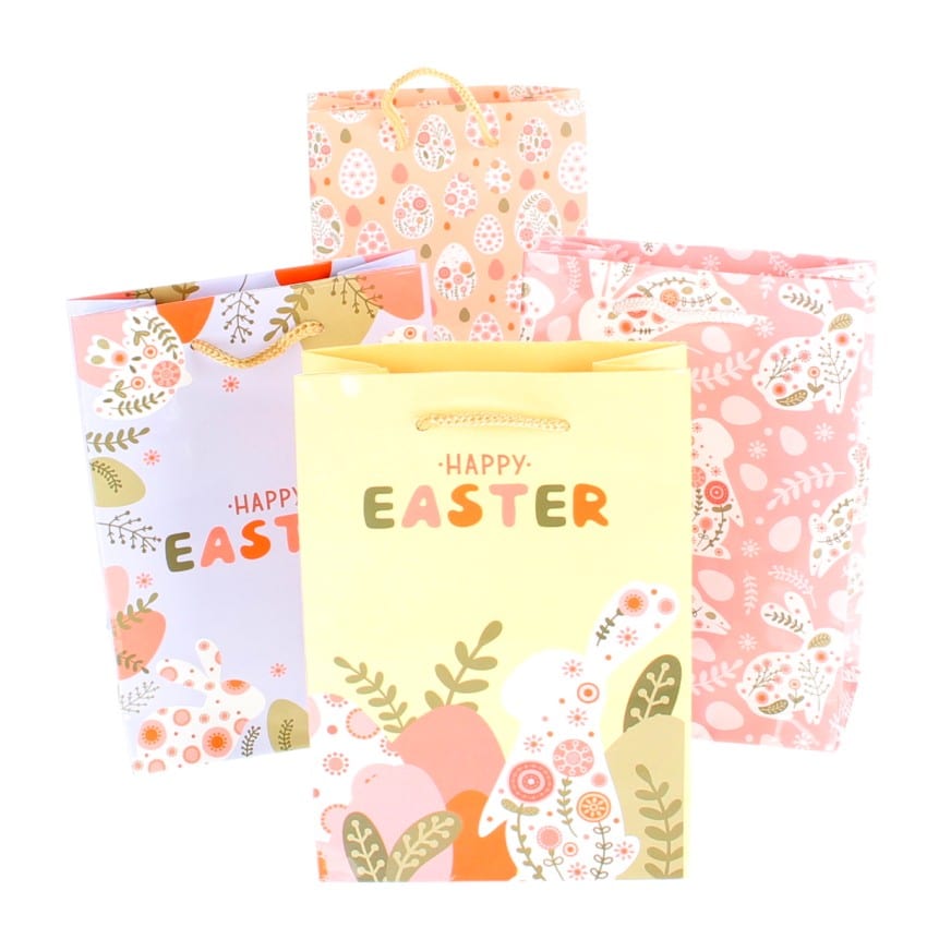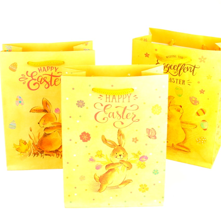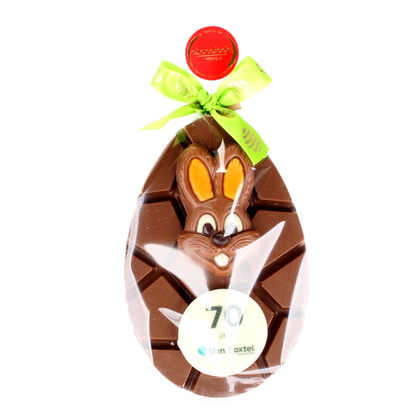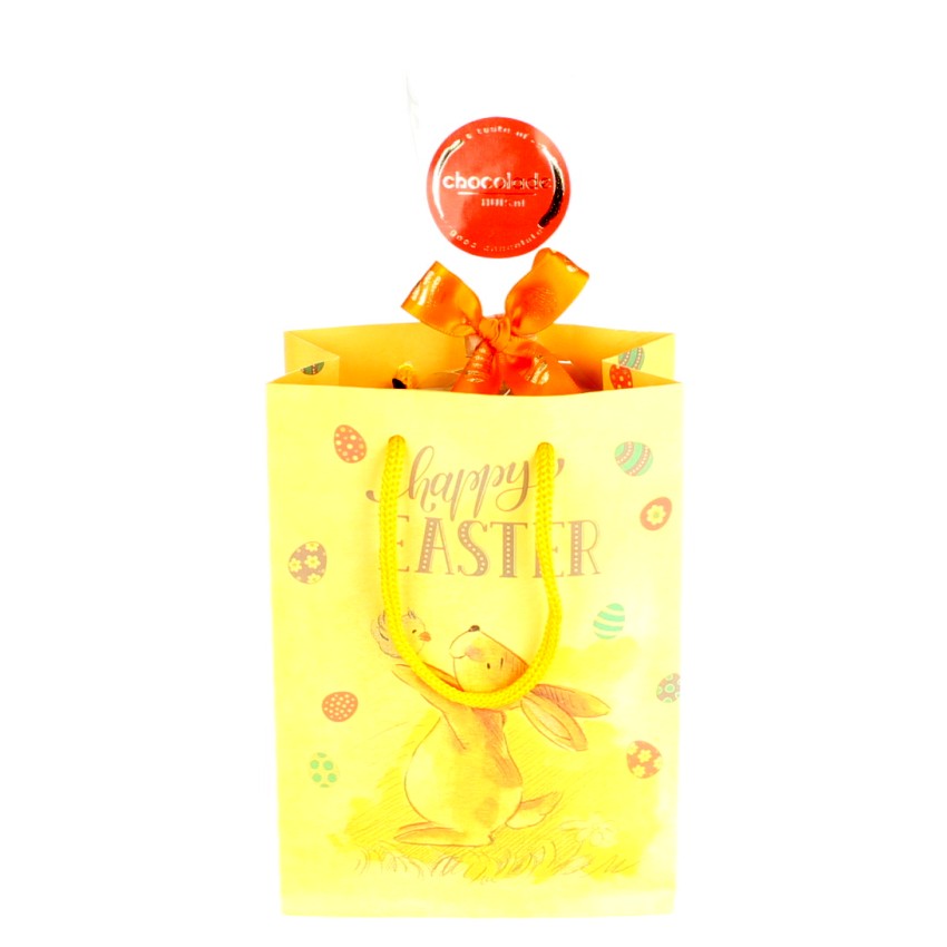 Een vrolijk geschenktasje gevuld met een zakje paasfiguurtjes en een chocolade ei. In totaal ongeveer 220 gram chocolade. Een leuk cadeau voor een vriendelijke prijs!
