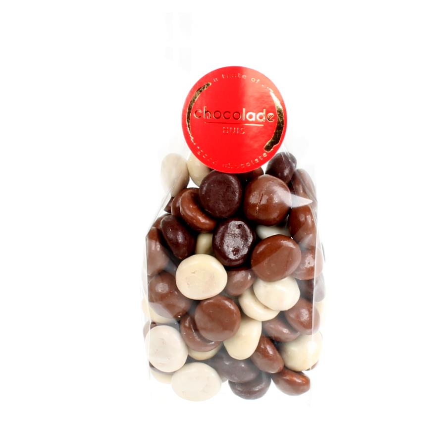 De zak van Sinterklaas deluxe bevat simpelweg veel chocolade in een papieren zak! Het een goede oplossing als je op zoek bent naar chocolade zonder vulling, met toch een feestelijke uitstraling. De zak is gevuld met een chocolade letter van ca.100 gram, een zakje Sinterklaasfiguurtjes van 125 gram en 150 gram chocolade pepernoten (of 175 gram strooigoed).