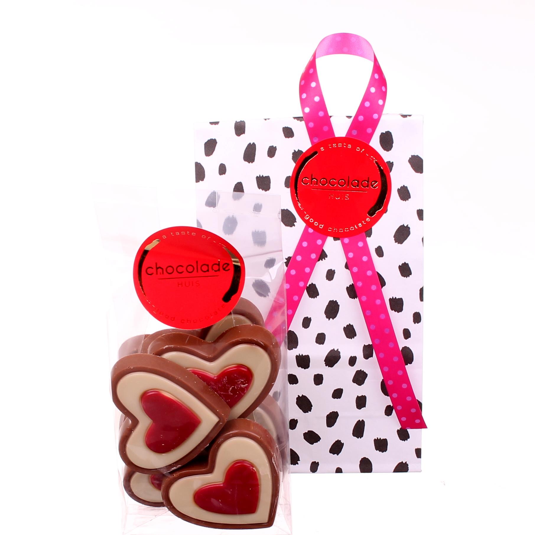 Een klein geschenk voor Valentijn of als Hart onder de riem! Een zakje met 8 hartjes van 125 gram verpakt in een geschenkzakje. Leuk om te geven en nog leuker om te krijgen!